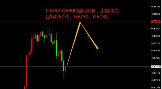 0.6790-0.6800区间卖出,止损20点,目标0.6770、0.6750、0.6730。