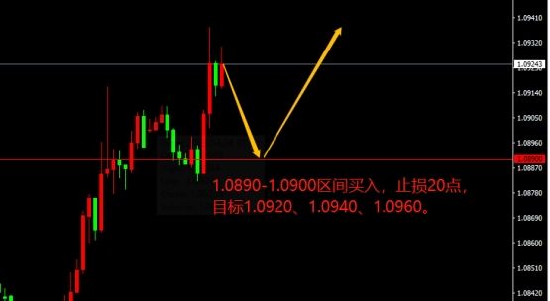 1.0890-1.0900区间买入,止损20点,目标1.0920、1.0940、1.0960。