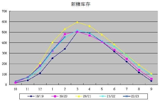 新榨季开始,新糖开始上市,糖库存同比持平。
