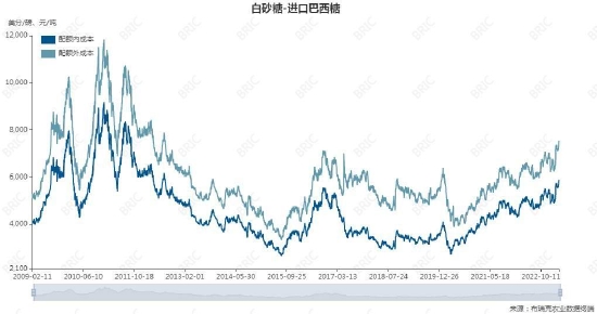 原糖价格在20-21美分/磅附近,加上海运价格增加。进口方面,配额内征税15%,进口还有利润,但配额有限。配额外征税50%,虽然可以放开进口,但由于目前进口价格高于国内现货,进口价格偏高。2023年2月中国进口食糖31万吨,同比减少10%。
