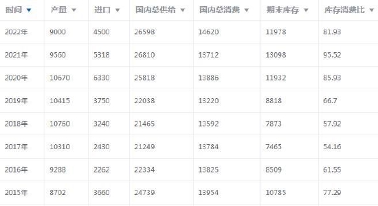 国储大约700万吨,近几年变化不大,临期轮储为主,对价格影响不大。