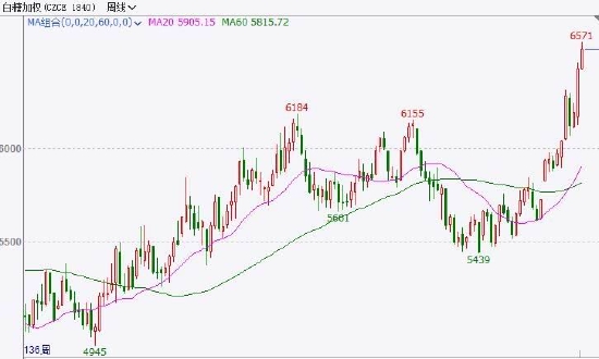 4、技术分析:白糖创出新高,走势震荡偏强。