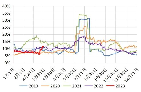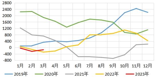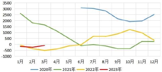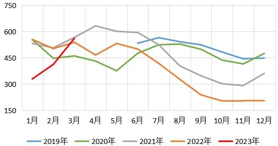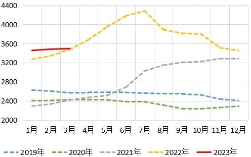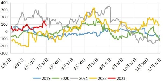 国内地租成本同比增加和化肥价格高企抬升玉米生产成本。当前国内局部地区已播种春玉米,4月是玉米春播主要时期,种植成本影响远期玉米定价标准。根据全国农产品成本收益资料显示,国内玉米生产成本中比重前三项为人工、地租和化肥,近些年由于务农人数减少和国内耕地有限,人力成本和租地成本上涨。东北产区玉米产量占全国玉米总产量近一半,根据东北产区反馈,2023年种植成本上涨主要源于地租涨价,2023年东北地区地租为2000-3000元/公顷,同比上涨了15%-25%,一定程度支撑新季玉米价格。当前化肥价格处近五年历史同期高位,截至3月20日,复合肥价格为3491.7元/吨,同比上涨35元/吨。尽管化肥原材料的油价有所回落,但仍处于历史同期偏高位置,且俄乌冲突仍未结束,局势严峻程度和持续时长面临不确定性,理论上油价仍会高企,随着用肥旺季来临预期市场会抬升化肥价格。综上可见,对于2023年玉米种植,租地成本同比增加和化肥价格偏高会抬升玉米种植成本,从而支撑远期玉米价格。