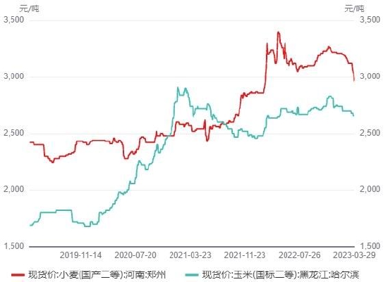 国家抛售低价陈麦和小麦丰产预期利空玉米。3月下旬,随着国家低价收购和抛售小麦的消息公布,小麦价格大跌,引发玉米基层恐慌情绪加快售粮。3月29日竞价小麦最终成交量约111万吨,成交均价为2679元/吨,最高成交价为2760元/吨(比小麦现价低200元/吨,比玉米主产区黑龙江现价高10元/吨),4月国家仍有低价抛售陈麦计划,叠加新麦丰产预期,饲料企业观望欲伺机采购替代玉米饲用。关注小麦成交结果,若量小价高对玉米利空影响有限。