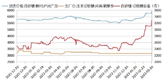 图表23:白砂糖-玉米淀粉糖价差走阔(元/吨)