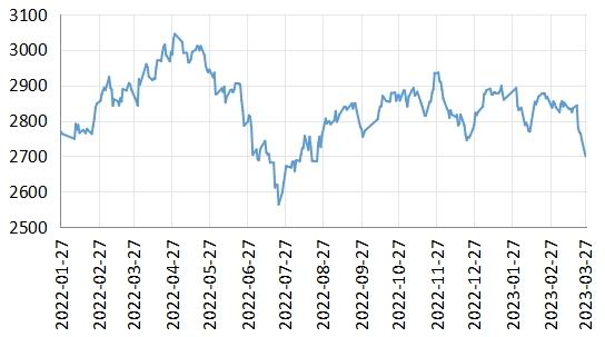3月国内玉米期货价震荡下行,主要原因包括:一、宏观避险情绪导致大宗商品价格下挫,国内大量进口低价玉米利空期价;二、小麦大跌和稻谷抛储利空预期压制玉米需求。截止3月27日,国内玉米活跃期货收盘价2700元/吨,较月初2854元/吨下降了154元/吨;北良港新国标二等玉米平舱价2820元/吨,较月初2900元/吨下降了80元/吨;南方蛇口港新国标二等玉米成交价2880元/吨,较月初2980元/吨下降了100元/吨;外围方面,CBOT玉米期货收盘价为648.25美分/蒲式耳,较月初635.75美分/蒲式耳上涨了12.5美分/蒲式耳,国内外玉米价差走缩。