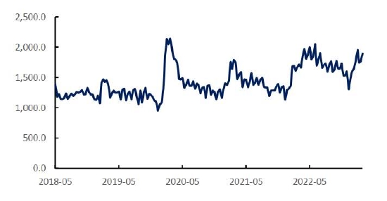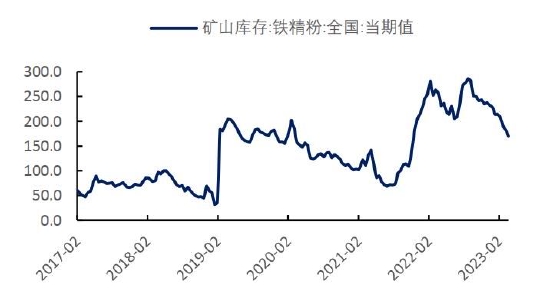 回顾2022年港口库存先降后累,上半年供需相对偏紧,港口库存快速下滑,下半年铁矿发运恢复而钢厂盈利下滑,实际需求疲软后港口库存出现累库,整体呈现降库趋势。我们在年报中展望2023年库存情况预计库存再次下降概率不大,一季度实际港口库存低位运行,与我们预期一致。