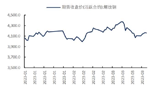 第四阶段:两会后至今,受海外硅谷银行风险事件影响,商品价格普遍回落。宏观情绪转弱,钢材需求冲高回落,叠加铁矿监管及粗钢压减等因素催动,黑色系大幅回落,而后迎来一定的反弹。