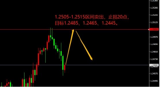 1.2505-1.2515区间卖出,止损20点,目标1.2485、1.2465、1.2445。