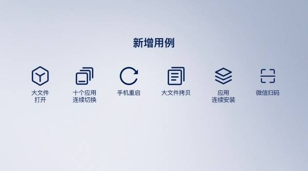 此外,通过与手机使用3年以上用户的调研沟通,对使用场景也进行了优化,新增了大文件微信打开用例、十个应用连续切换、手机重启、大文件拷贝、应用连续安装、微信扫码等使用场景的测试。