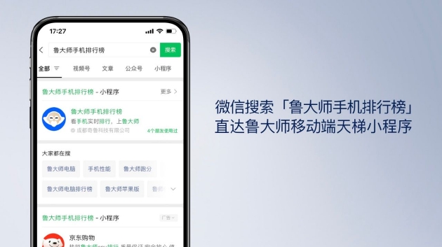 鲁大师今年在微信端上线了天梯小程序,微信搜索“鲁大师手机排行榜”便可了解到现有PC/手机的天梯数据。除了提供天梯榜单信息之外,小程序内也支持品牌搜索,以便用户了解在各个榜单中相应品牌产品的名次。