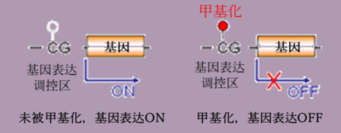 前沿科学研究表明,表观遗传机制包括DNA甲基化、组蛋白修饰、非编码RNA等。这些机制可以影响染色质的紧密度、基因的可读性和转录的效率等,从而影响基因的表达和细胞功能。其中,DNA甲基化是一类发生在胞嘧啶5号位碳原子上、可稳定遗传的表观修饰(-CH3),广泛存在于细菌、植物和哺乳动物中。当基因的表达的CG位点被甲基化,DNA转录所需的RNA聚合酶等就无法与之结合,从而最终影响到基因表达和表观形态的变化。