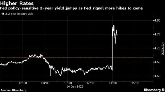 官员们在所谓的点阵图中给出了对2023年底的5.6%的中值预测,暗示今年将再收紧50个基点。相比之下,3月份点阵图的中位数为5.1%。