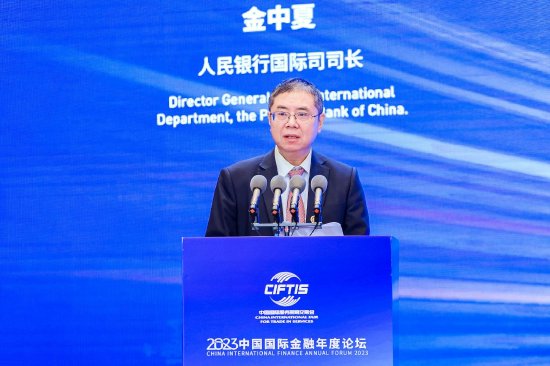 2023年服贸会金融服务专题活动板块的“2023中国国际金融年度论坛”于9月3日在北京举行,主题为:守正创新 开放引领——全球经济重塑与金融业变革。中国人民银行国际司司长金中夏出席并演讲。