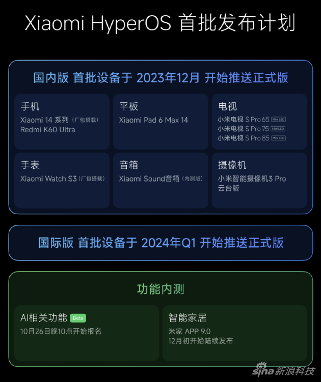 小米澎湃OS国内首批设备于2023年12月推送,国际版将于2024年Q1正式推送。AI的相关功能于10月26日晚10点开始报名。