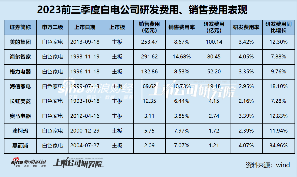 家电公司在销售费用、研发费用方面的投入在很大程度上能够体现公司对于营销与技术投入的侧重,同时,也能够对其净利润的规模产生直接影响。