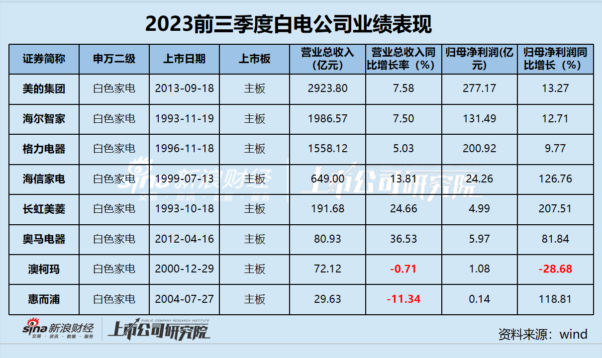 白电三巨头贡献主要业绩 澳柯玛是唯一一家营收、净利润双双下滑公司