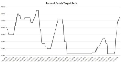 美联储联邦公开市场委员会 (FOMC) 上周将联邦基金利率维持在5.5%不变。目标利率的“暂停”表明,联邦公开市场委员会 (FOMC) 认为,其已将目标利率提高到足以抑制物价通胀,自2021年中以来,物价通胀一直远高于美联储任意设定的2%通胀目标。