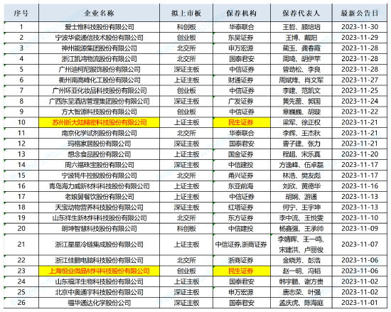 11月份终止的26家公司中,最值得关注的是民生证券撤回的两家项目,上海恒业微晶材料科技股份有限公司(恒业微晶)和苏州新大陆精密科技股份有限公司(新陆精密),这两家公司都曾被抽中现场检查。