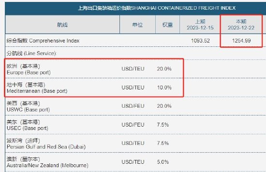 但是加权后的综合运价指数,12月22日报价为1254.99点,考虑到美国航线等未受到红海事件的影响,可以看出实际上“SCFIS”大幅上涨趋势很可能不会改变,但绝非一定会涨停,也不宜盯着现货报价做期货。
