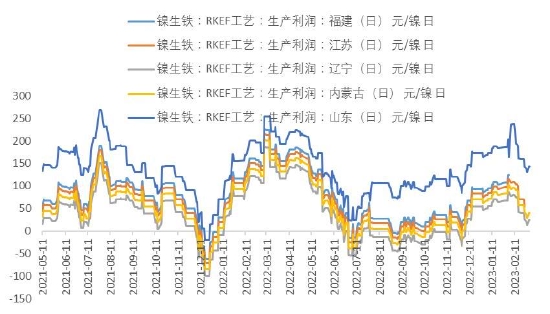 这种弱需求复苏、高库存压力下,304价格持续走低,而不锈钢和镍铁的利润率呈现自下而上逐步收窄的态势。MYSTEEEL毛利率数据显示,截止3月14日,304冷轧利润仍不佳,废不锈钢工艺利润率最高,可达4.7%;但一体化工业冶炼304利润率跌至2.2%,外购高镍铁利润率2.0%,低镍铁+纯镍工艺利润率-23.4%。镍铁各地区尚有利润,但3月以来下降压力很大,截止3月3日,江苏和山东地区镍铁利润分别为54元/镍和143元/镍,而今年以来最高值为115元/镍及164元/镍,利润降幅非常明显。