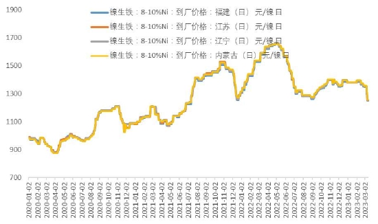 根据MYSTEEL统计,高镍铁价格2023年1月至3月13日,降幅超过9%,下降了125元/镍点左右。硫酸镍(电池级)则同期下降了2.68%,下降了1000元/吨。