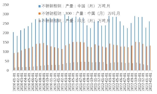 图1-13:不锈钢中国及印尼月度产量 单位:万吨