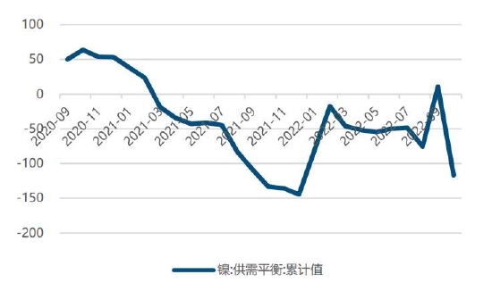 世界金属统计局(WBMS)报告显示,2022年12月全球精炼镍产量为26.07万吨,消费量为26.71万吨,全球精炼镍市场供应短缺0.64万吨。2022年全球精炼镍总产量为299.97万吨,消费量为306.02万吨,全球精炼镍市场供应短缺6.05万吨。2022年12月全球镍矿产量为27.69万吨,2022年全年产量为322.48万吨。