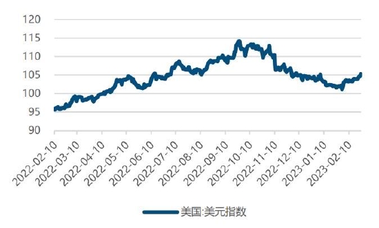 2月初美联储利率公布最新利率决议,宣布加息25个基点,将基准利率升至4.50%-4.75%区间,利率水平升至2008年以来新高,基本符合市场预期。但是随着美国非农数据、通胀数据等数据的相继公布,市场发现美国经济的依旧表现较为强劲,本轮经济衰退可能只是一个浅衰退,在美联储纪要和美国关键经济数据的指引下,市场进一步确认了美联储的升息前景。2月份美联储多位官员的表态也支持通过不断加息来抑制通胀。