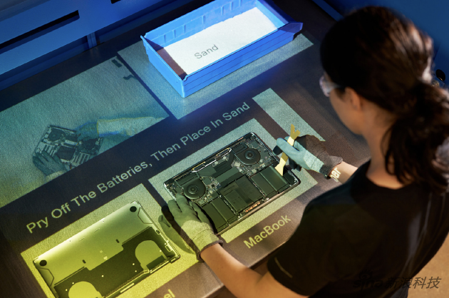 苹果公司还已开始为回收合作伙伴部署基于投影仪的增强现实(AR)系统。该系统可将视频影像直接投放在工作面上,从而引导MacBook和iPad等设备的拆解。苹果甚至面向全球回收机构发行《Apple 回收机构指南》,最大程度地提升材料回收效率,并保护人员健康和安全。