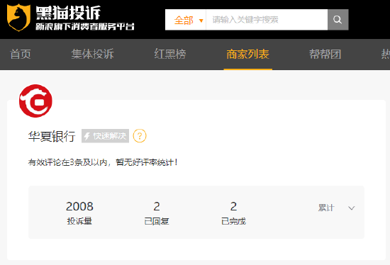 黑猫投诉【投诉入口】平台的数据显示,华夏银行累计2008单投诉,无一回复处理。有用户表示办理信用卡时业务员承诺消费5次免年费,因个人消费频率较高故没有关注过账单。后续查询才发现华夏银行信用卡在没有任何通知的情况下私扣了5年年费,经过和客服反复的沟通才退回了1年年费,还付出了划掉5万积分的代价。