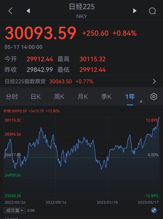 日本股市连续第四天走高,日经225指数自2021年9月以来首次收于30000点之上。