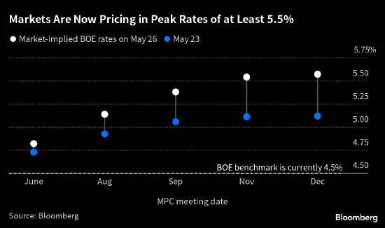 此前,剔除波动较大的能源和食品价格的核心通胀指标意外升至30多年来的最高水平。投资者急于消化英国央行基准利率再次上升1个百分点至5.5%的预期,这是自2008年初全球金融危机爆发以来从未见过的水平。