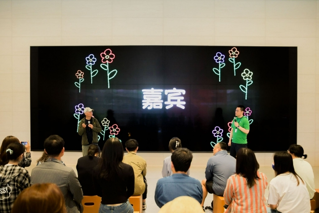 他们在北京,成都和昆明开展了9 场Today at Apple嘉宾分享课程。课程内容丰富多样, 例如“独家呈献:跟着星球研究所解锁环保新方式”,“独家呈献:跟着余天一走进植物的大 千世界“,“光影实验室:跟着奚志农用影像保护自然”,和“音乐实验室:跟着‘不成气候’ 制作环保主题播客“等。