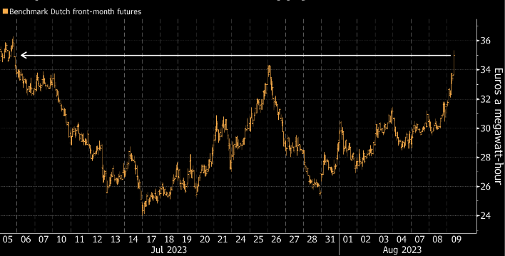 由于澳大利亚一些工厂可能发生罢工,供应风险推动欧洲天然气期货最高暴涨40%,自6月份以来首次突破每兆瓦时40欧元。基准天然气期货周三一度上涨了40%,为2022年3月以来最大涨幅,延续了前两个交易日的涨势,也凸显了市场对供应的紧张情绪。石油和煤炭价格也走高。雪佛龙和Woodside Energy Group Ltd.澳大利亚工厂的员工投票赞成罢工。在全球竞相抢购天然气之际,罢工可能影响澳大利亚的液化天然气出口。罢工的时机以及是否会举行目前尚不清楚。
