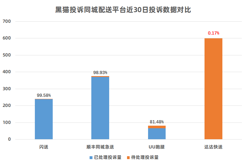 黑猫大数据中心发布同城配送平台近30日投诉数据对比情况,数据来源为截至2023年8月18日企业在黑猫投诉【投诉入口】平台的投诉处理数据。