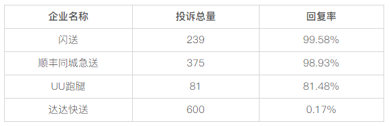 本次数据对比包括企业有效投诉总量和投诉回复率。