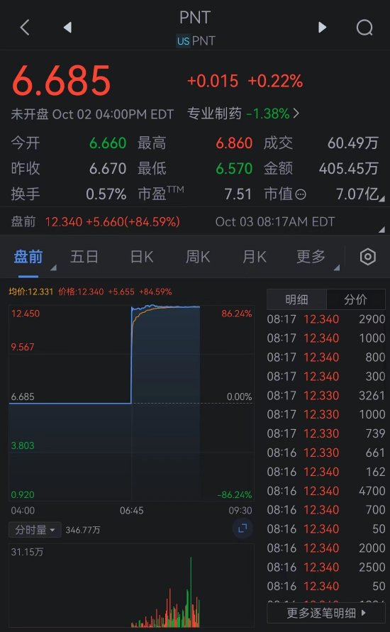 周一,Point Biopharma收于每股6.67美元。今日盘前交易中一度飙升84.6%,至12.34美元,略低于礼来公司给出的12.50美元的报价。
