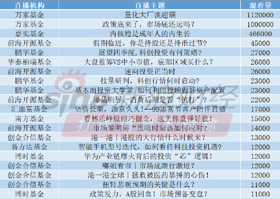 从直播效果来看,共有39场直播观看量超1万。 单场观看量榜单前十中,前海开源基金、创金合信基金均上榜4次,鹏华基金上榜3次,万家基金、博时基金均上榜2次。