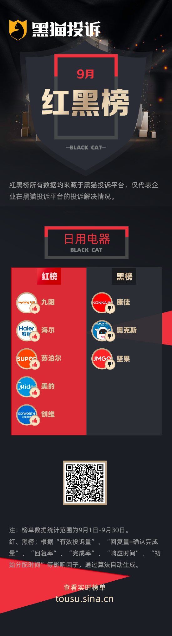 黑猫投诉【投诉入口】发布9月份企业投诉处理红黑榜单,数据均来源于黑猫投诉平台,反映了企业在黑猫投诉平台的投诉处理解决情况。