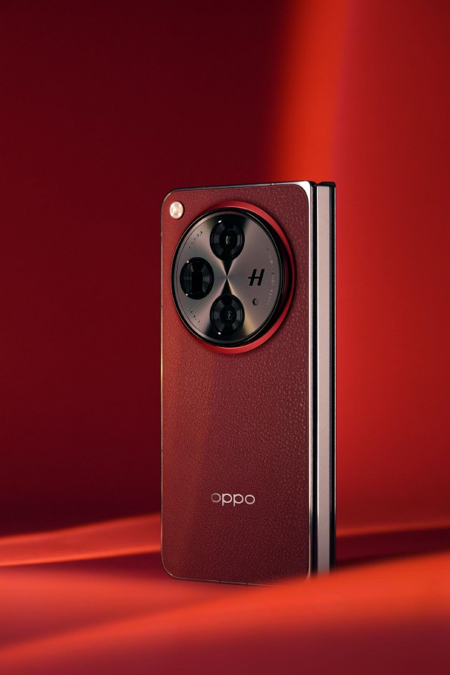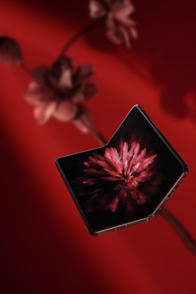 OPPO Find N3 典藏版‘赤壁丹霞’,这个红色本身是内敛与厚重的,在光下又充满朝气。