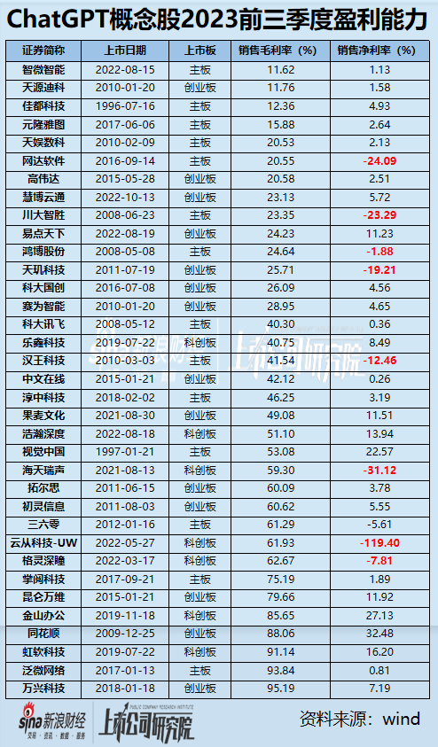 “ChatGPT概念股”的盈利能力指标则相差较大。