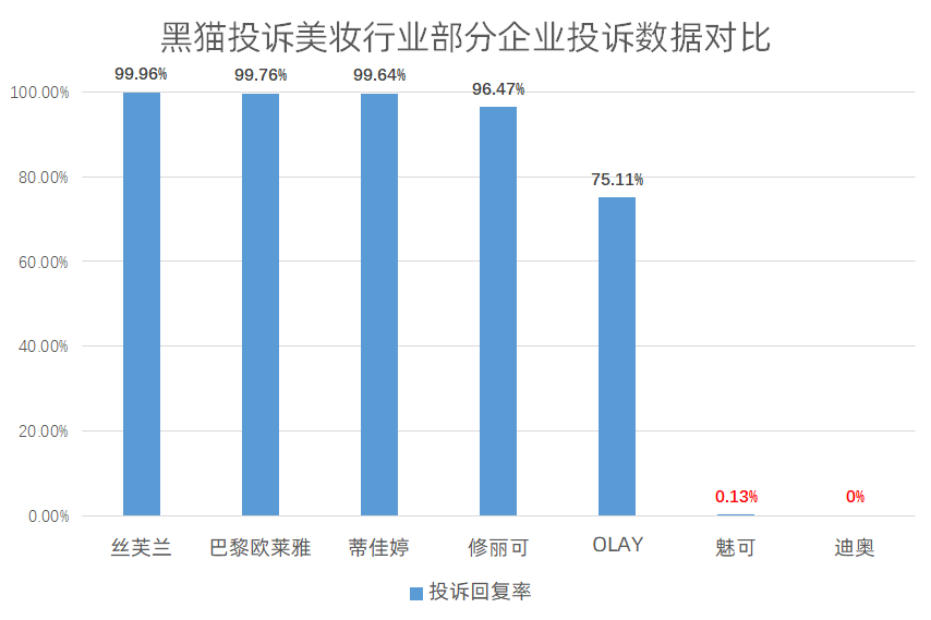 黑猫大数据中心发布美妆行业投诉数据对比情况,数据来源为截至2023年11月24日企业在黑猫投诉【投诉入口】平台的投诉处理数据。