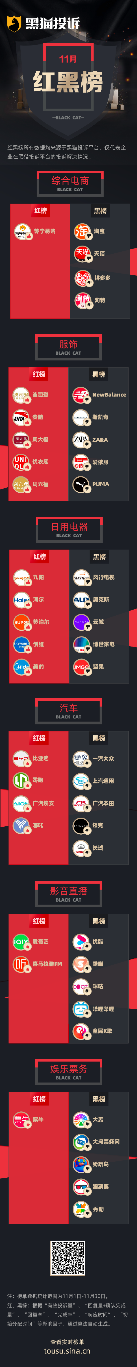 黑猫投诉【投诉入口】发布11月份企业投诉处理红黑榜单,数据均来源于黑猫投诉平台,反映了企业在黑猫投诉平台的投诉处理解决情况。