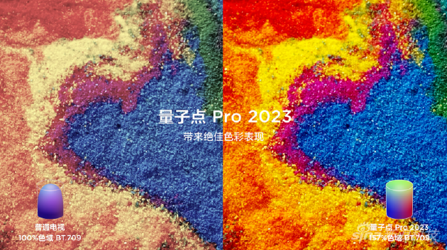 TCL Q10G Pro在最高上千分区的支持下,拥有XDR 2200nits的峰值亮度,动态对比度也达到2200万:1。同时,这款产品搭载TCL量子点Pro 2023技术,采用全新四元量子晶体,并采用超高精密包裹技术,将纳米级量子点材料与有机材料多层共聚,从而获得更优秀的光学属性,色域值98%DCI-P3。