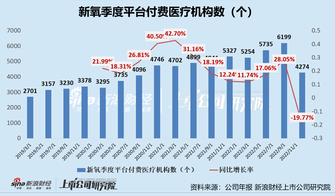 其次,从医美服务供应商付费医疗机构角度来看,截至2022年12月31日,新氧科技平台付费医疗机构数为4274家,同比下降了19.77%,这也是3年来首次出现付费医疗机构数同比下降的状况。