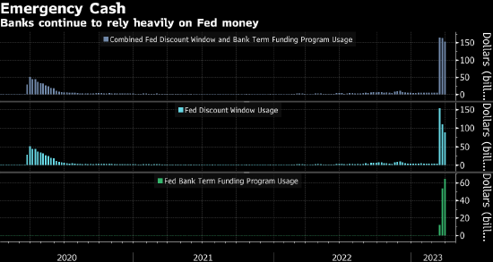 最新数据表明,在一系列银行倒闭后,决策者为遏制危机蔓延所作出的努力正在奏效,不过银行的借贷规模仍远高于低压力时期的典型水平。
