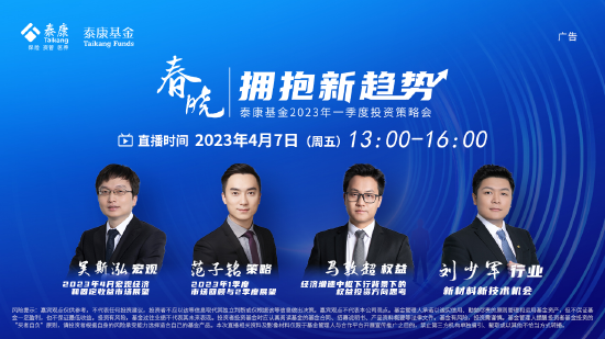 2023/4/7 13:00 泰康基金2023年一季度投资策略会《春晓·拥抱新趋势》