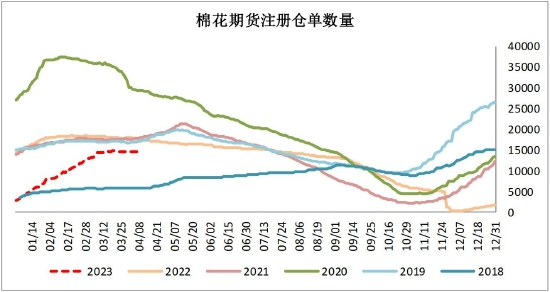 截止2023年4月4日,交易所棉花期货注册仓单14612张。