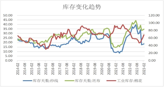 棉花市场行情主要逻辑仍然受到宏观利多以及中国经济恢复的影响,预计2023年有望维持稳中有升的行情,美联储加息边际效应减弱,后续降息可能性加大;中国经济复苏进度加快,内需增加,纺织企业订单维持到5月,总体订单水平有所回升,目前宏观情况以及下游订单情况依然是影响后市的重要变量,值得关注。